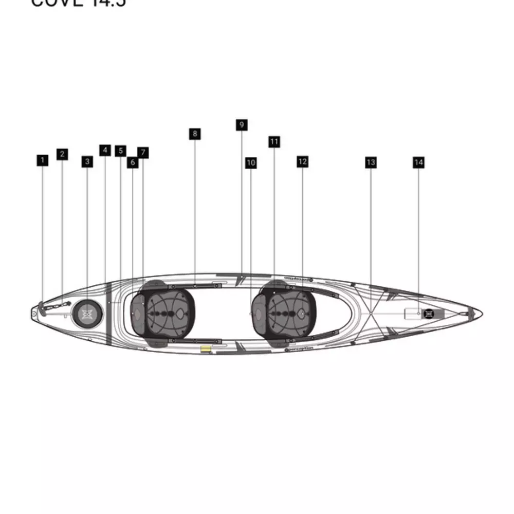 The Cove 14.5 tandem kayak is perfect for families who want to enjoy paddling together. Its versatile 14'6" design provides exceptional stability and performance, making it easy for all skill levels to enjoy. The extra-roomy sit-in design is padded along the edge, providing a comfortable experience entering and exiting the kayak. With a sealed dry storage compartment and incredibly comfortable seats, the Cove is ready for your next adventure on flat-water rivers, lakes, ponds, and coastal bays. Come share the experience and make great memories with the Cove 14.5.