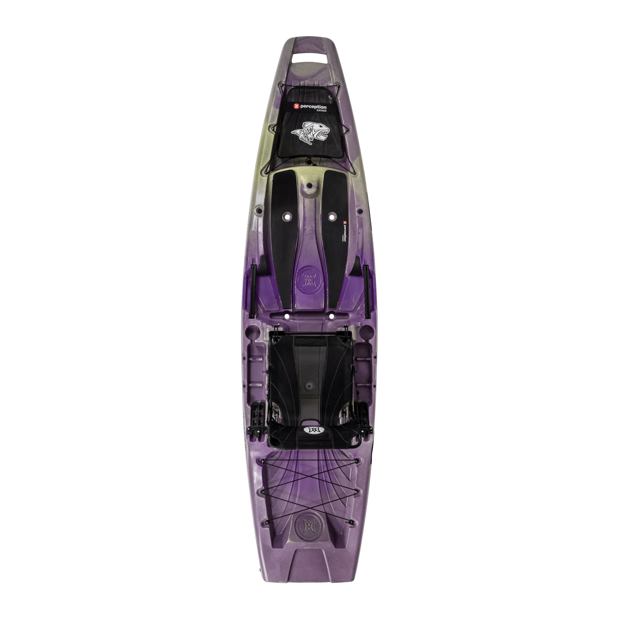 So good it should be illegal. The Outlaw 11.5 fishing kayak boasts a wide-open deck, an expansive standing platform, elevated seating, and intuitive features throughout, proving that a unique angling platform doesn't need to break the bank. The Outlaw also integrates industry-firsts, including a stowaway seat for complete deck walkability and up to a 35L cooler space. 2 double-barrel rod holders offer the ultimate multi-rod setup. The elevated seating allows for a high fishing vantage point, and the ergonomic and comfortable seat extends time on the water and transitions easily from sitting to standing. With several unique attachment points and room to accessorize, rigging has never been easier. Add the Perception kayak saddle bags (sold separately) and this kayak is a horse of a different color.