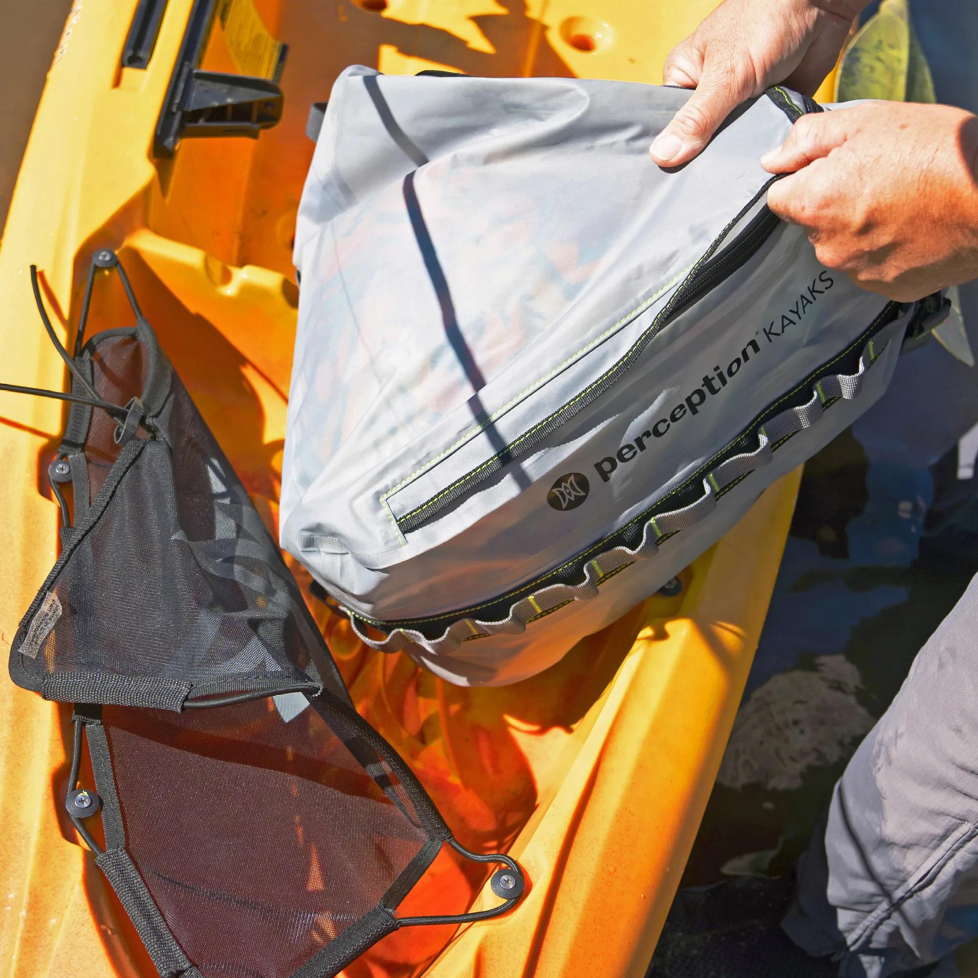 Introducing the ultimate all-purpose storage solution for kayakers! Our splash-proof kayak storage bag is a versatile option that perfectly fits the bow storage well of the Perception Pescador Pro and Pilot 10/12. It also fits many sit-on-top kayak storage wells and hatches, making it a versatile addition to your gear collection. With a zippered opening on top, you can easily access your gear while the YKK water-resistant zipper, zipper rain flap, waterproof materials, and RF welded seams keep splashing water and rain out. Please note that this product is not submersible. The internal mesh pocket keeps smaller items organized, while adjustable shoulder straps and a firm handle make it easy to transport. D-rings on the bag make it easy to lash down to your kayak, while the heavy-duty material on the bottom panel adds extra durability where it’s needed most. Measuring 18” W x 17.25” L x 7” H, our kayak storage bag is made from lightweight polyurethane-coated 70 denier nylon with a durable polyurethane-coated 420D ripstop nylon bottom panel. So, you can rely on it to withstand the elements and protect your gear. Whether you’re fishing, touring, or just enjoying a leisurely paddle, our splash-proof kayak storage bag is a must-have for any kayaker.