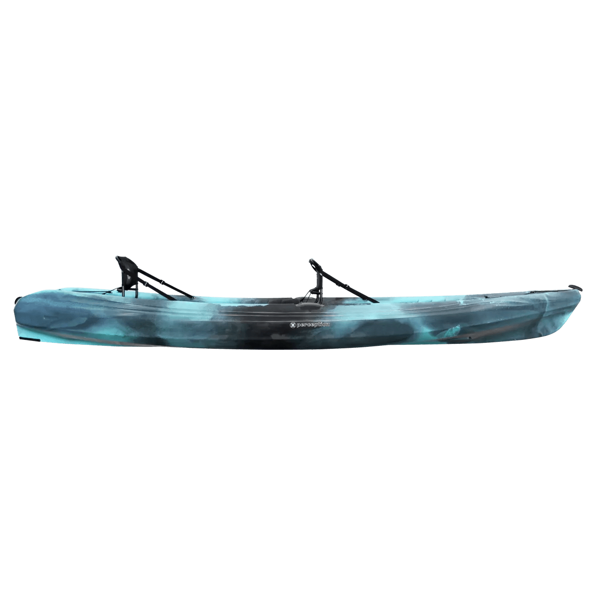 Affordable and easy-going, the Tribe 13.5T kayak performs terrifically in light surf, lazy rivers and flat water for you and your favorite paddling partner. Thanks to a high-back frame seat, the Tribe is now even more comfortable with increased support and cushioning. The new seatback takes relaxation to the next level with multiple recline positions, creating the ultimate lounge to kick back, relax and catch some rays together while floating about. Lightweight and fully stackable, with many handles, getting this tandem kayak to the water is a total breeze.