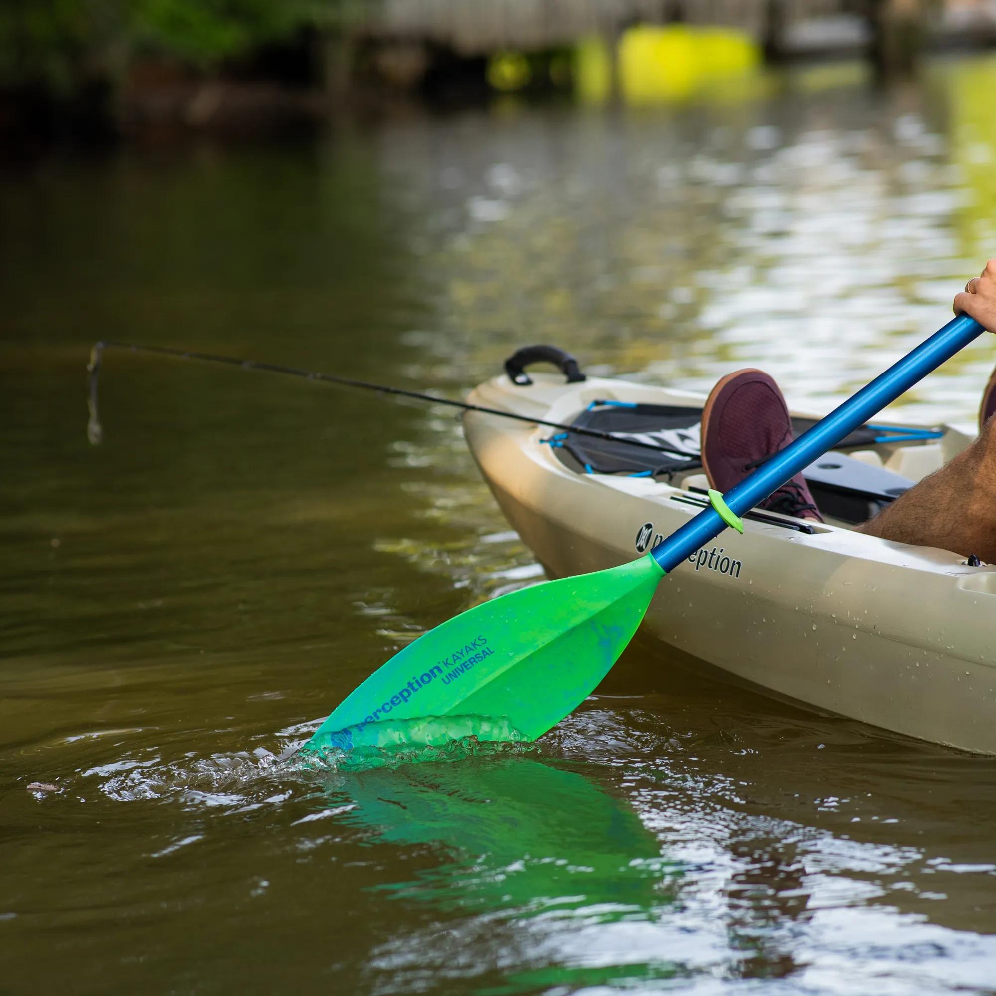 La pagaie de kayak universelle en deux parties Perception est conçue pour s’adapter à tous les kayaks récréatifs semi-fermés et ouverts Perception. Elle est dotée de pales légères renforcées de fibre de verre offrant une durabilité et un équilibre parfaits. La forme dièdre de la pale permet des mouvements fluides, stables et sans à-coups. La pale robuste est adaptée aux conditions calmes, venteuses et difficiles. Cette pale démontable en deux parties avec virole moulée par injection résistante à la corrosion, et mise en drapeau à trois positions (L60/0/R60), ne pèse que 0,9 kg (33 oz). Vous pouvez donc l’apporter facilement dans toutes vos aventures.